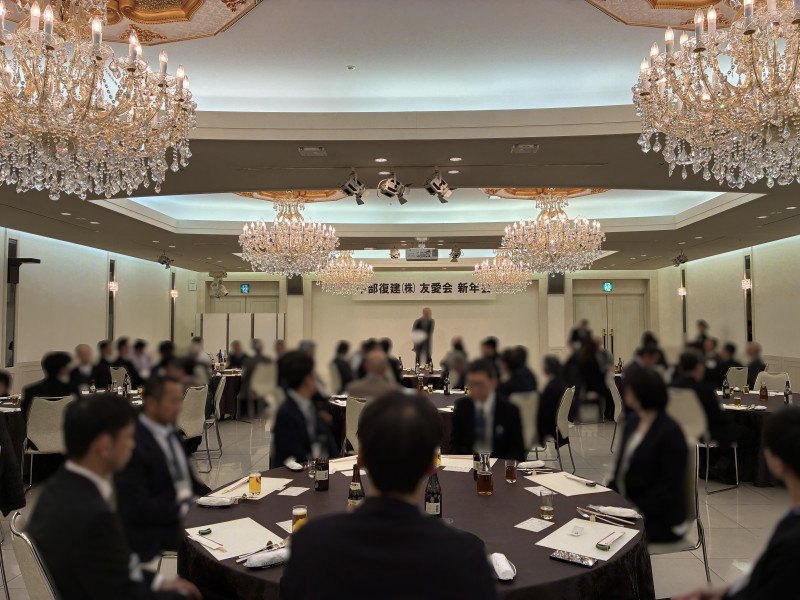 講演会の後は新年会を行い、美味しい食事とアルコール、ノンアルコールを交えて談笑し、