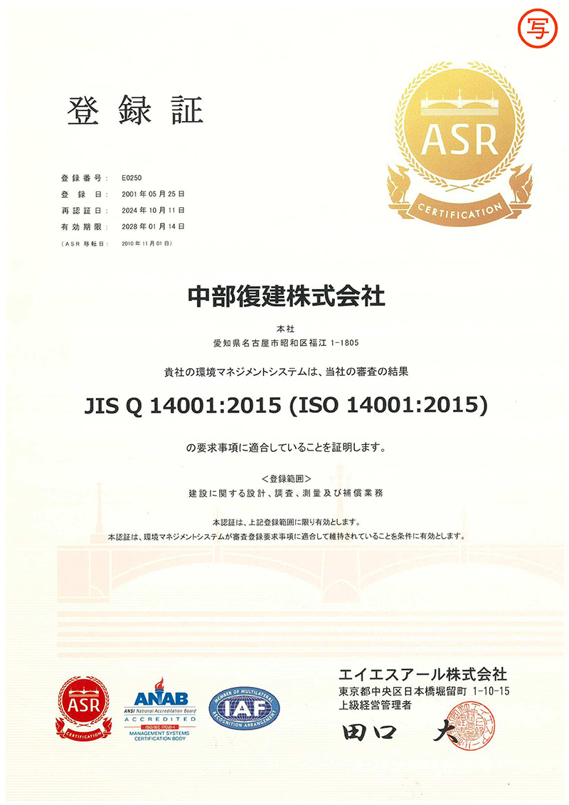 このため、品質・環境マネジメントシステムの維持及び継続的改善のために、ISO9001・ISO14001の下、独自の品質・環境方針を定めています。